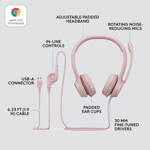 Fone de ouvido Headset H390 Usb Rose Logitech